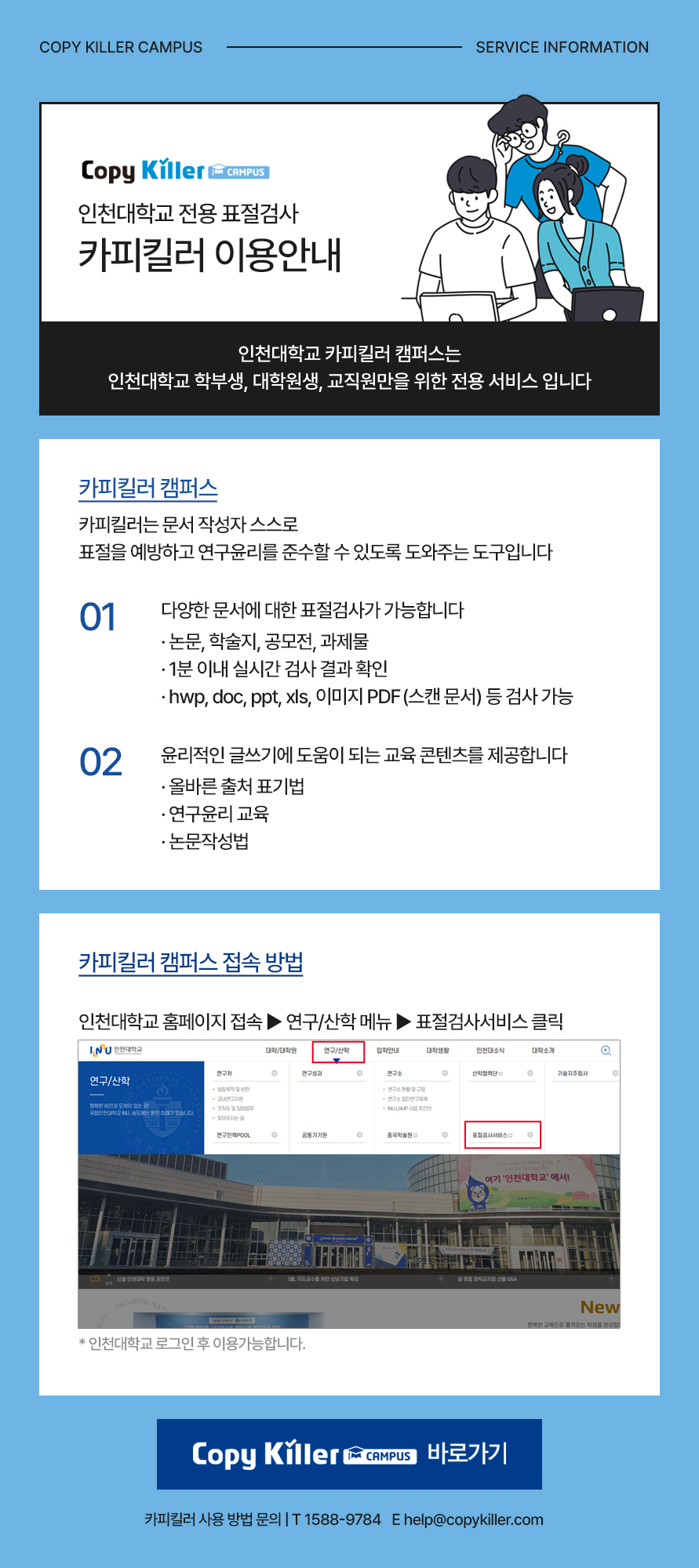 3. 계약기간 : 2026. 3. 6. ~ 2027. 3. 5. 4. 이용방법 : 인천대학교 홈페이지(연구/산학▸표절검사서비스)